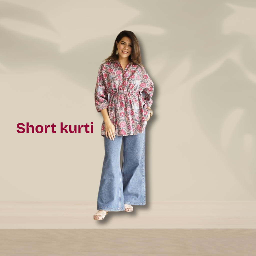 "This short kurti is super comfortable and stylish. Perfect to pair with jeans for a casual look!"